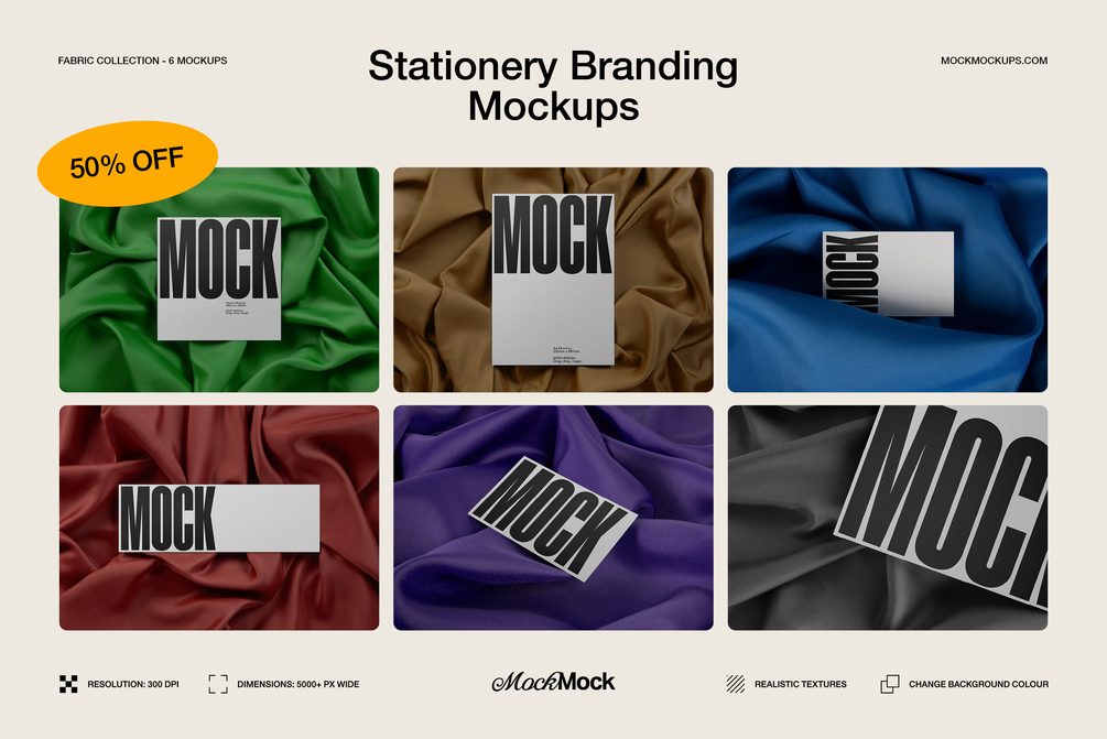 6 Mockups - Branding Stationery Mockup Bundle (Fabric Collection)