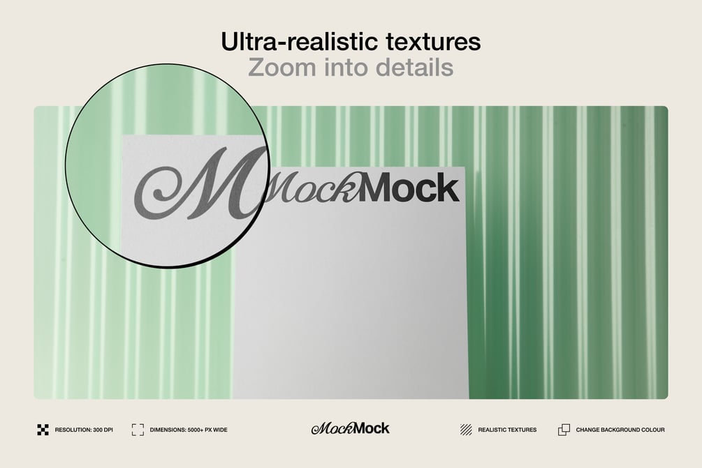 This mockup is part of the 'Eco' Collection, which is one of the 12 collections MockMock has launched. Each collection has 6 mockups in different paper size dimensions that you can find in our MockMock shop.