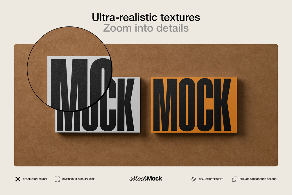 This mockup is part of the 'Kraft' Collection, which is one of the 12 collections MockMock has launched. Each collection has 6 mockups in different paper size dimensions that you can find in our MockMock shop.