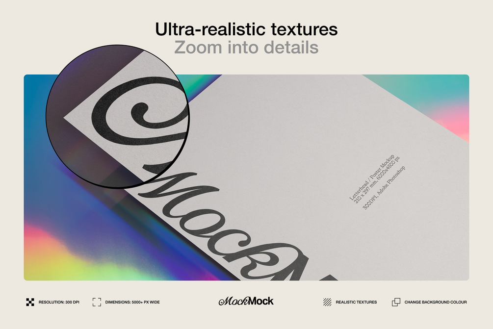 6000x4500 pixels Poster Mockup / Letterhead Mockup from our Iridescence collection.