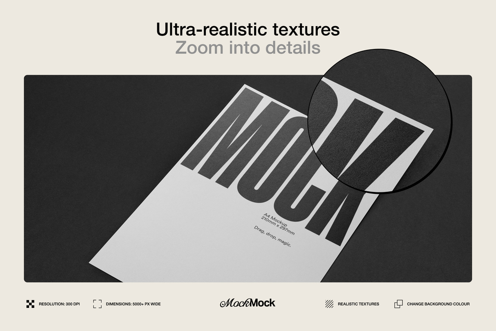 This mockup is part of one of the 12 collections MockMock has launched. Each collection has 6 mockups in different paper size dimensions that you can find in our MockMock shop.