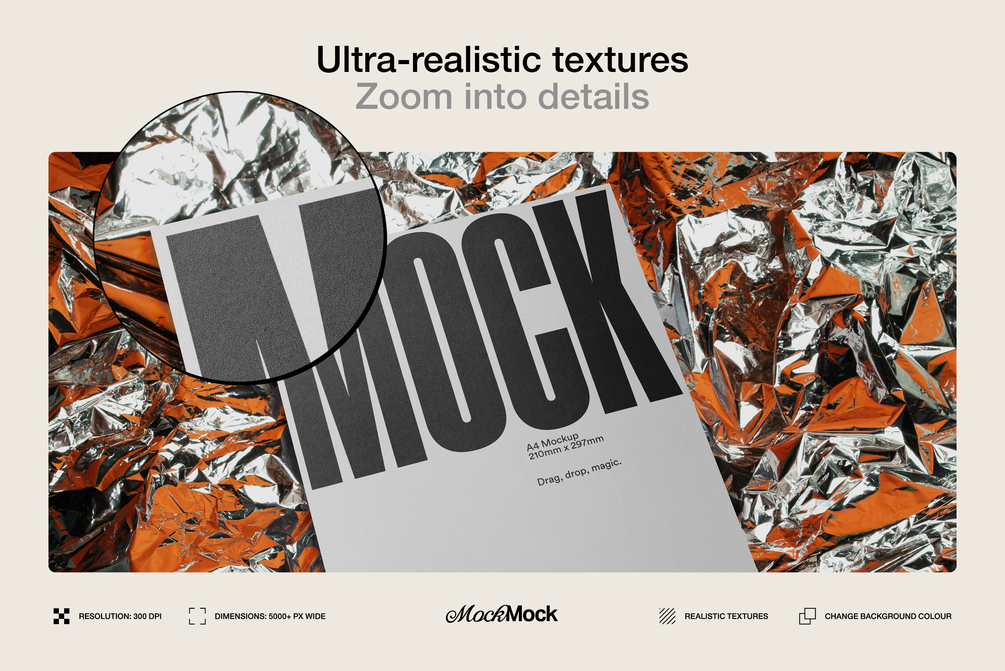 This mockup is part of one of the 12 collections MockMock has launched. Each collection has 6 mockups in different paper size dimensions that you can find in our MockMock shop.