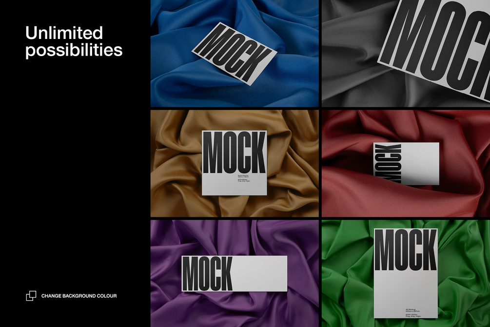 This mockup is part of the 'Fabric Blues' Collection, which is the third of 12+ collections that will launch this year. Each collection has 6 mockups in different paper size dimensions that you can find in our MockMock Gumroad shop.