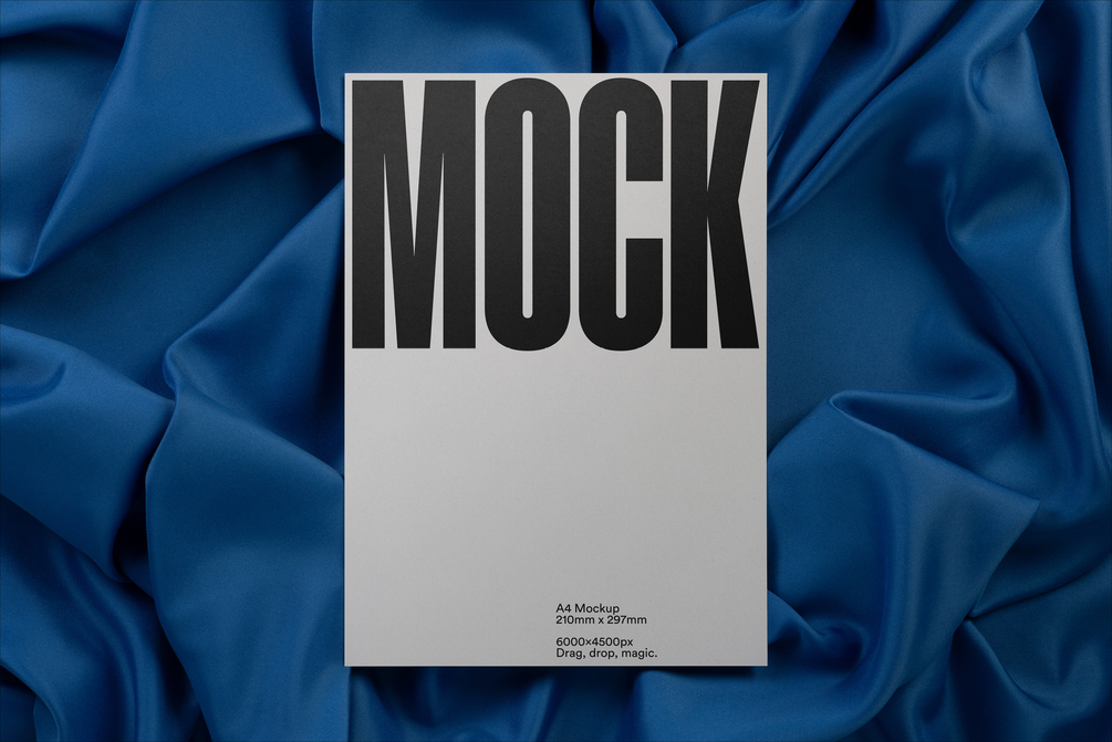 This mockup is part of the 'Fabric Blues' Collection, which is the third of 12+ collections that will launch this year. Each collection has 6 mockups in different paper size dimensions that you can find in our MockMock Gumroad shop.