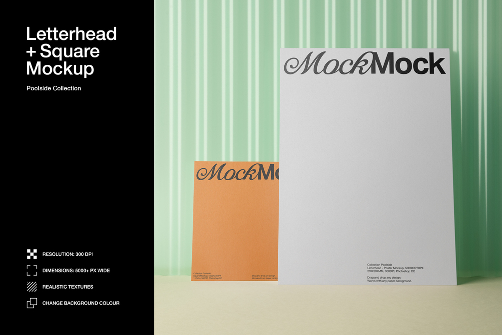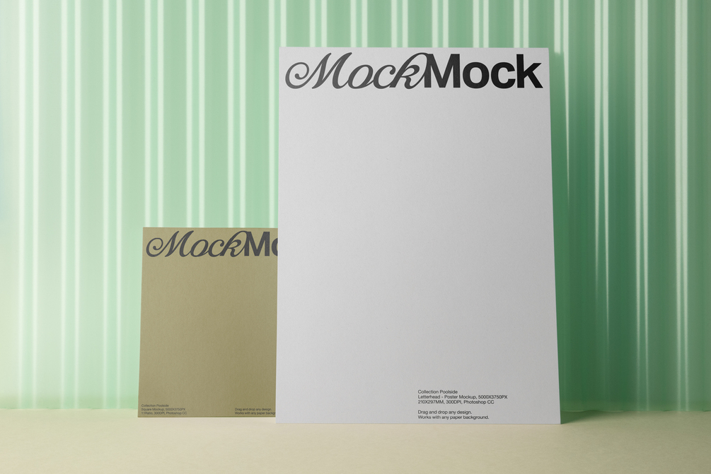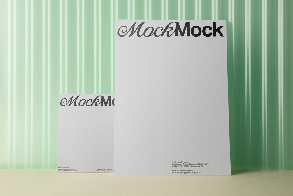 This mockup is part of the 'Poolside' Collection, which is the second of 12+ collections that will launch this year. Each collection has 6 mockups in different paper size dimensions that you can find in our MockMock Gumroad shop.